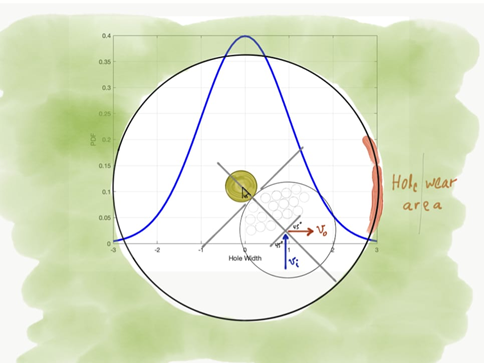 La metodología aplicada en este caso se basó en realizar baterías de experimentos controlados con lo que podríamos denominar un rodador/lanzador (Perfect Putter) incluyendo pruebas a distintas velocidades, ángulos y tipos de bandera y desarrollar una modelización estadística para estimar frecuencia de impactos centrados.